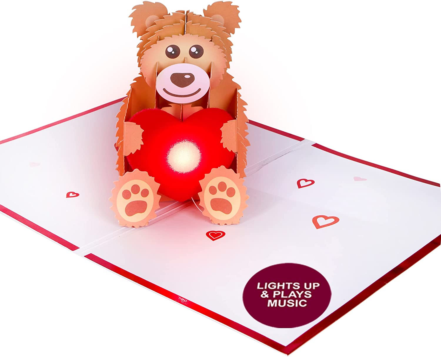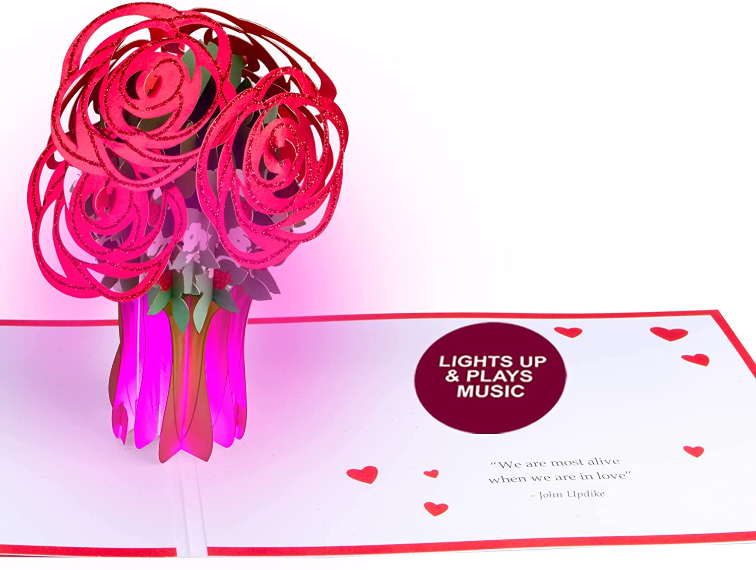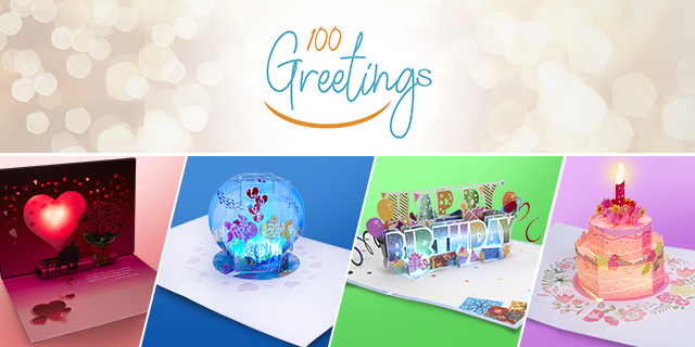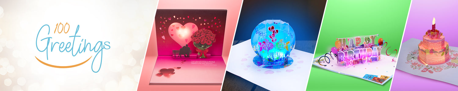 ★ ★ ★ ★ ★From soup to nuts, from A-Z, this is a 5-star rated card with quick delivery! Quality materials including the oversized envelope to fit the 3-D card and even has peel & stick instead of lick & stick! Great quote! Great song! Great workmanship with pop-up and light-up! Would buy from 100 Greetings again!