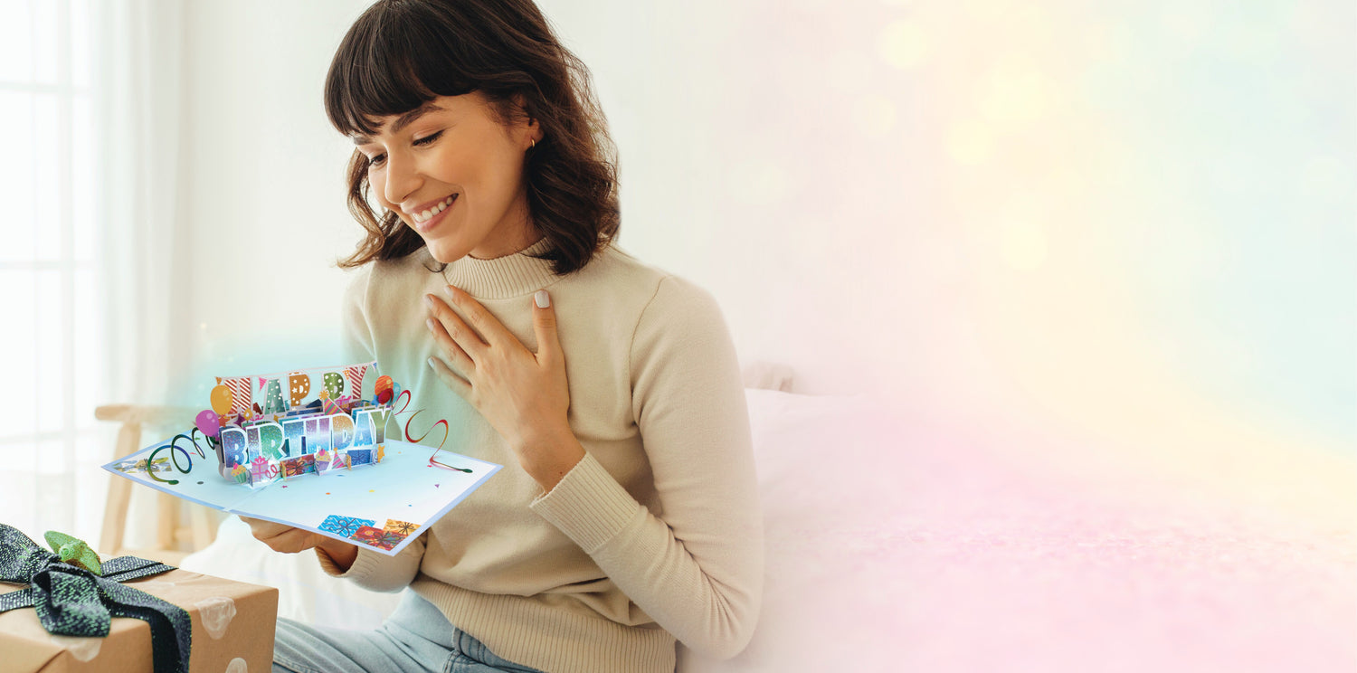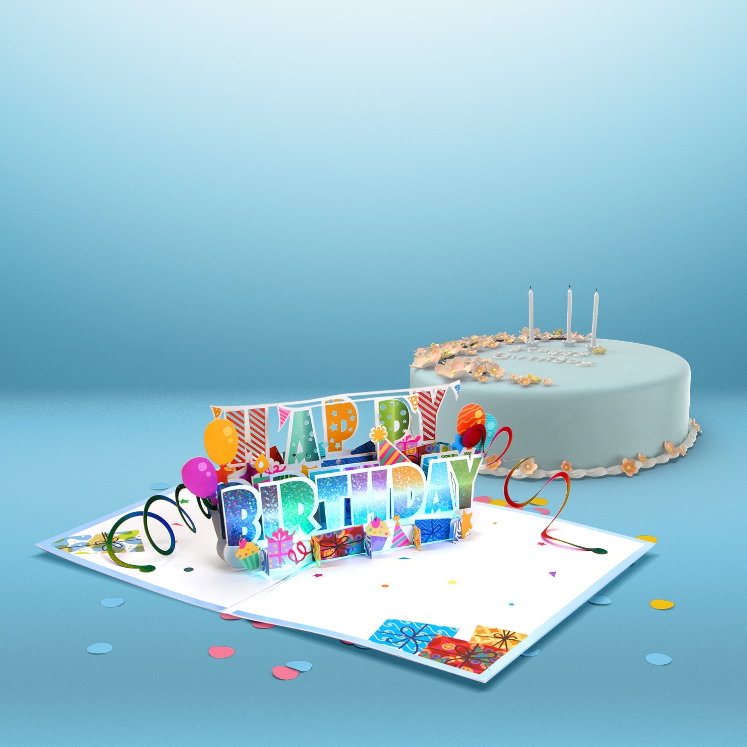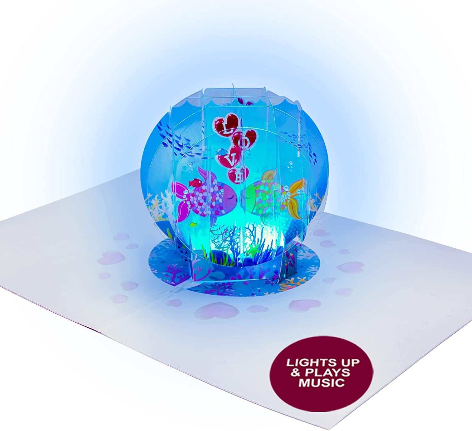 ★ ★ ★ ★ ★From soup to nuts, from A-Z, this is a 5-star rated card with quick delivery! Quality materials including the oversized envelope to fit the 3-D card and even has peel & stick instead of lick & stick! Great quote! Great song! Great workmanship with pop-up and light-up! Would buy from 100 Greetings again!