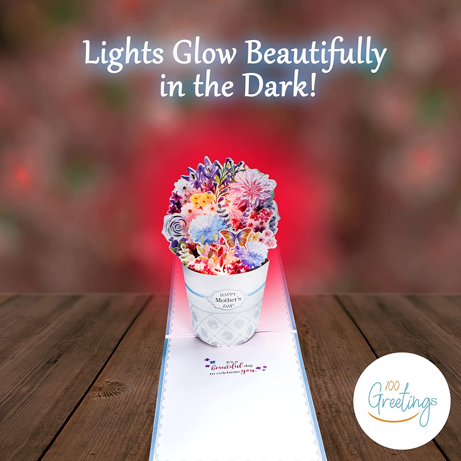Your mom will feel loved and appreciated when she opens her card and the classic song serenades her as the soft, multicolored lights dance in sync with the music.