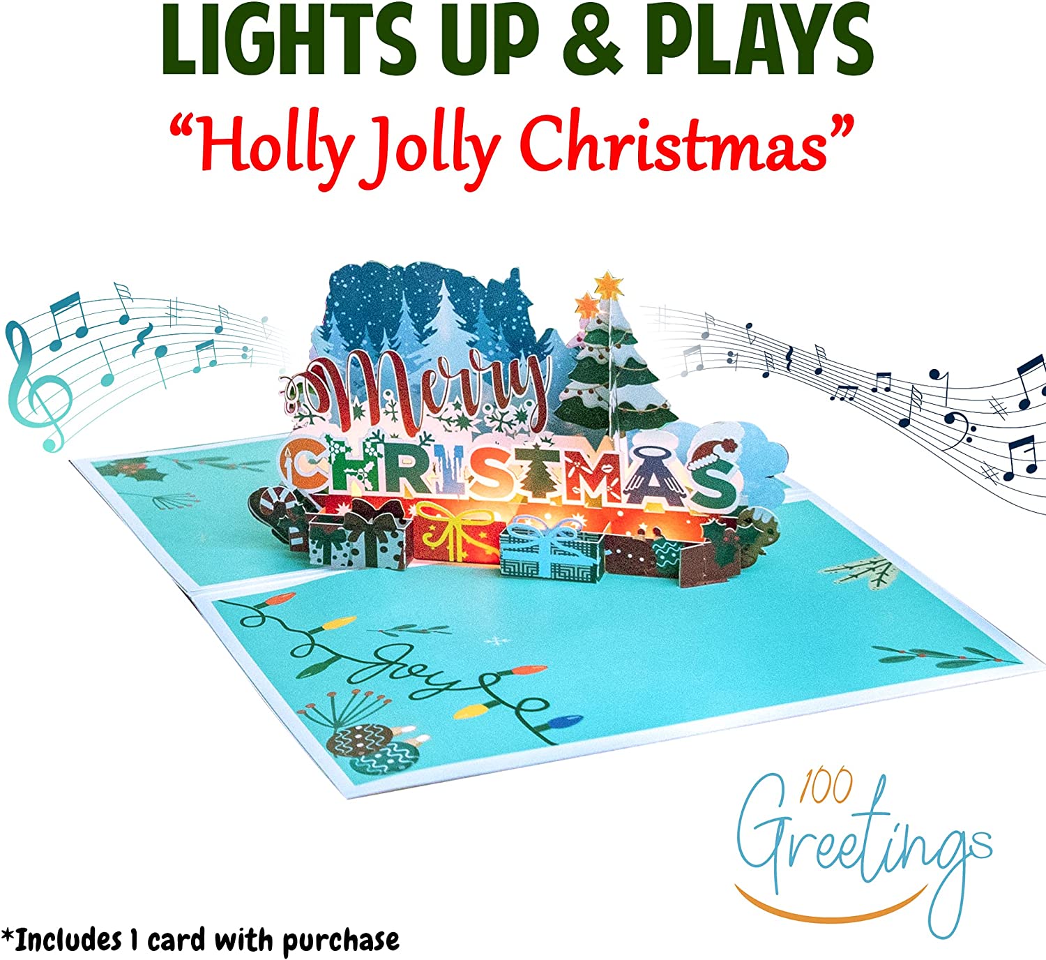 Our stunning Christmas popup cards let you gift the joy of Christmas to your friends and loved ones with festive lights & music. Imagine the smile on their face when they open your colorful β€˜Merry Christmas’ card and it pops up to play "𝐇𝐨π₯π₯𝐲 𝐉𝐨π₯π₯𝐲 π‚π‘π«π’π¬π­π¦πšπ¬" as the lights dance in sync! - (Each purchase includes ONE of our magical Musical Christmas Cards)