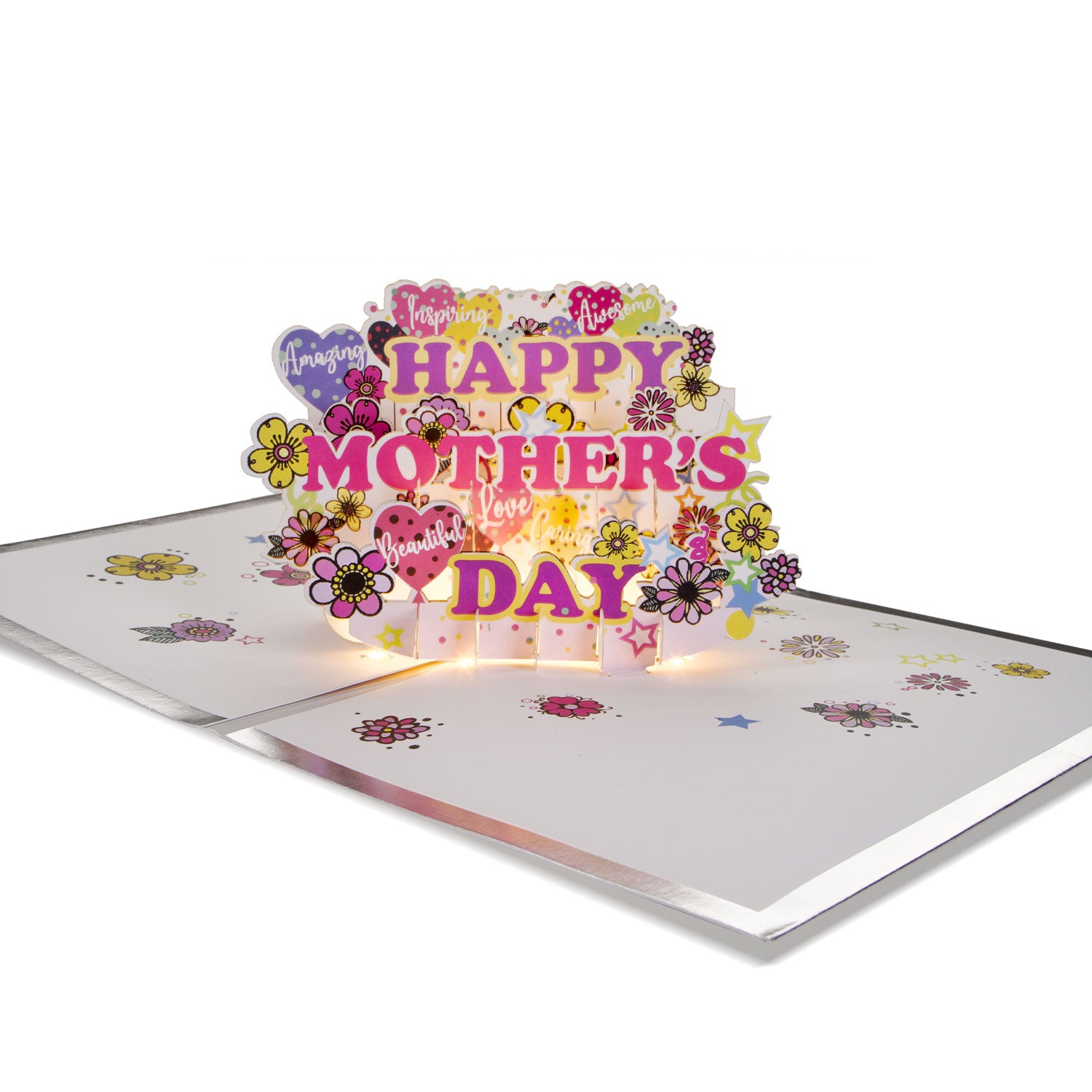 Our Happy Mother's Day pop-up card lets you send your mom a heartwarming Mother’s Day greeting with lights & music! Imagine the huge smile she'll have when the card pops up with a stunning 3D message that lights up & plays the song ‘Mamma Mia'.